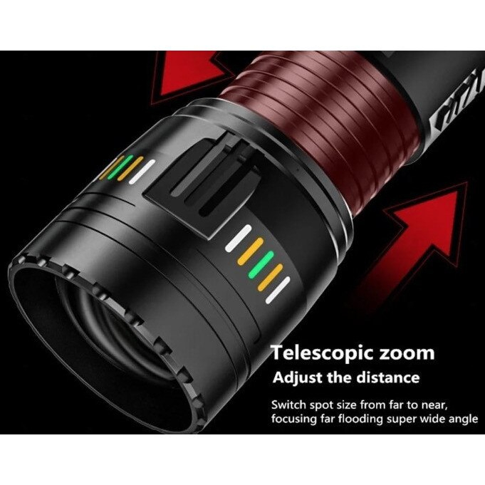 Lanterna LED de mana 3000M, potrivita pentru activitati precum camping, drumetii, ciclism, vanatoare, pescuit sau in timpul sarcinilor precum reparatii casnice.